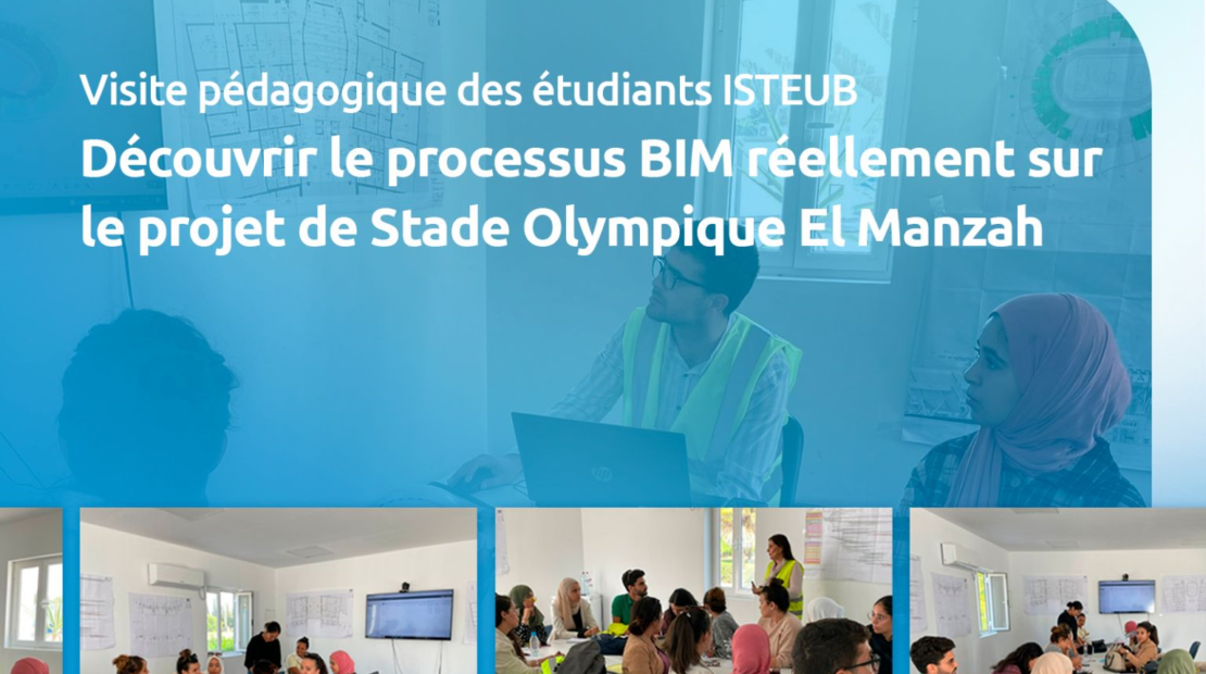 Visite des étudiants ISTEUB pour stade Olympique el Manzah pour une démonstration réelle de l’application du processus BIM sur site.