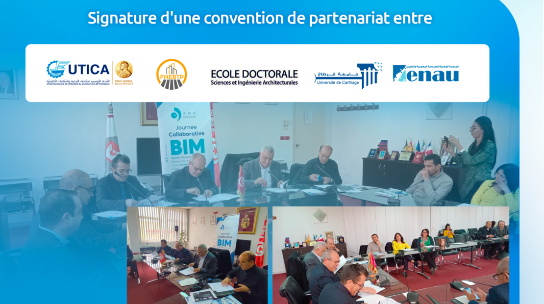 Dans le cadre de la digitalisation du secteur BTP en Tunisie, AMA GROUP soutient un accord de partenariat entre l’Université de Carthage, l’École Nationale d’Architecture et de Planification Urbaine (ENAU),...