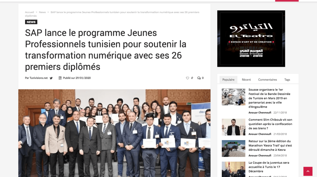 SAP lance le programme de Jeunes Professionnels Tunisiens pour soutenir la transformation numérique avec ses 26 premiers diplômés ..AMA Group, Discovery Group, Standard Sharing Software (3S) et STQ (Société Tunisienne...