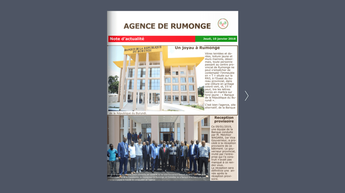 Réception provisoire Site Alternatif de la BRB à Rumonge – BURUNDI