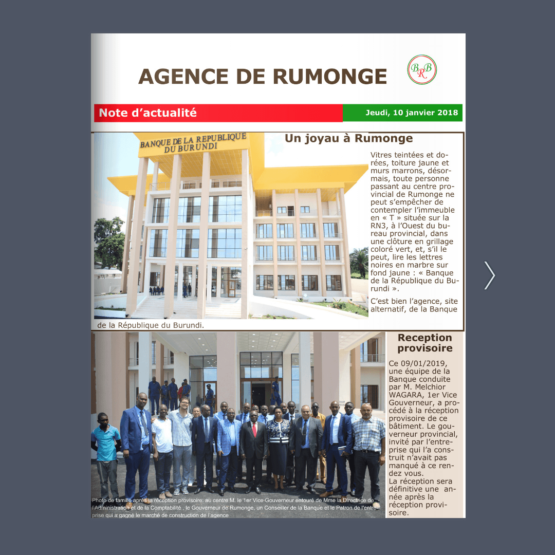 Réception provisoire Site Alternatif de la BRB à Rumonge – BURUNDI