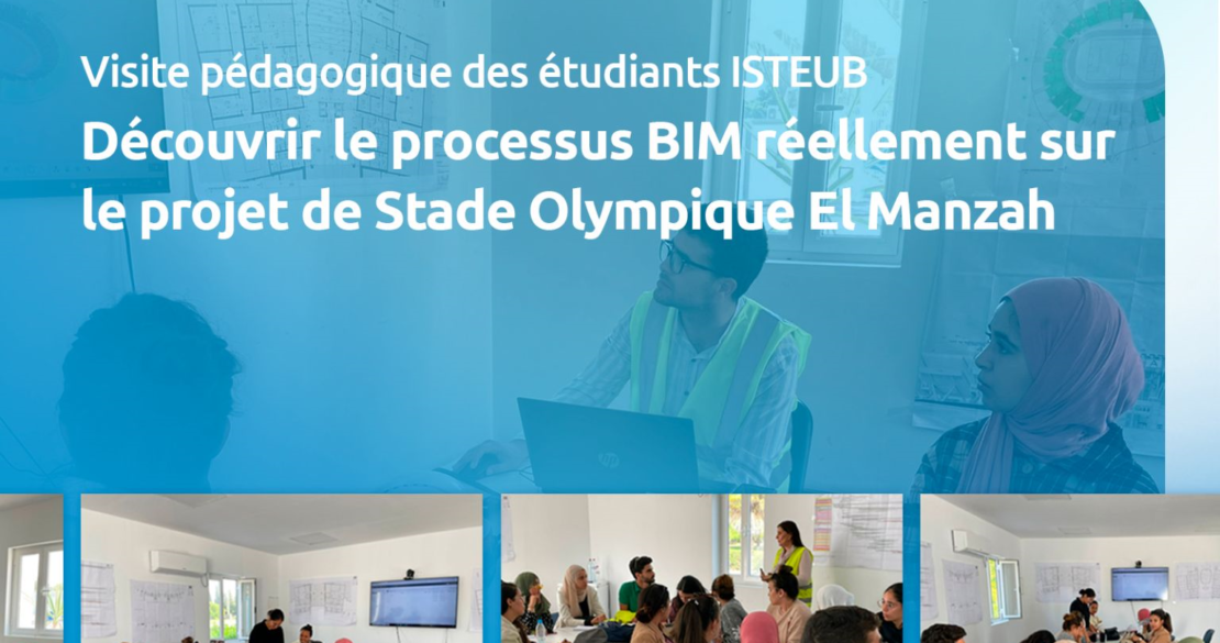 Visite des étudiants ISTEUB pour stade Olympique el Manzah pour une démonstration réelle de l’application du processus BIM sur site.